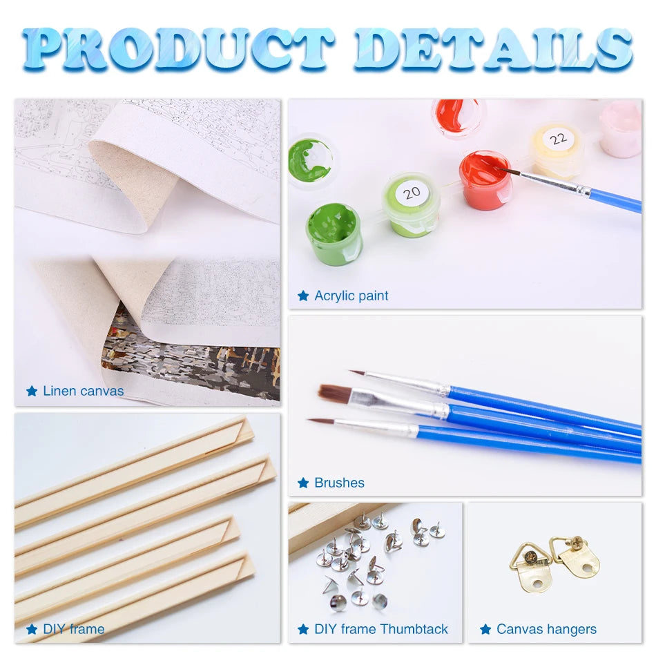 Includes paints, brushes, and pre-framed canvas for easy painting